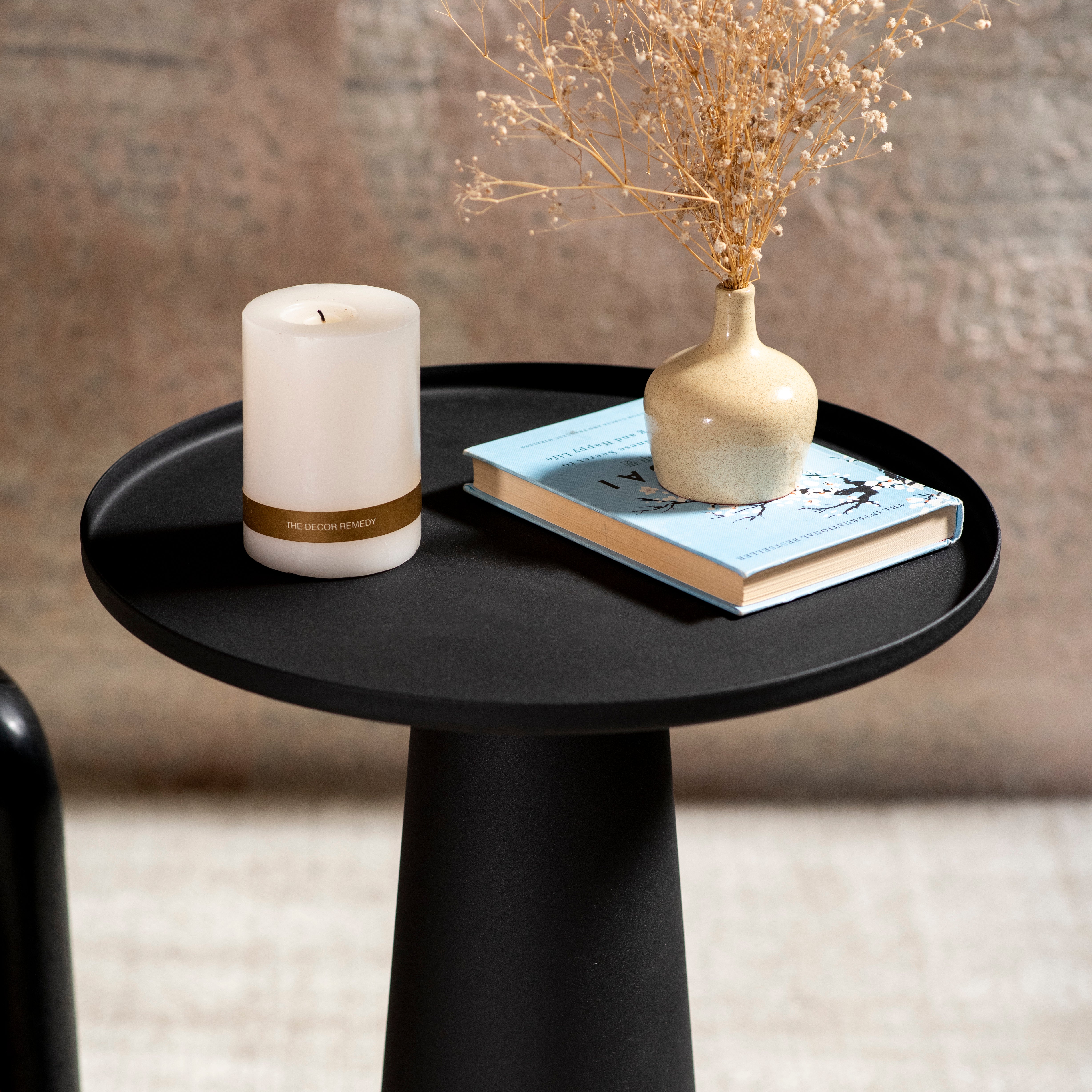 A table that moves with you between a lively gathering and a quiet evening corner. Matte black, sculpted and sleek, designed to hold your drinks, books, or flowers with effortless style. Pair with the shorter Brie or let it stand alone, a modern accent that feels at home anywhere.